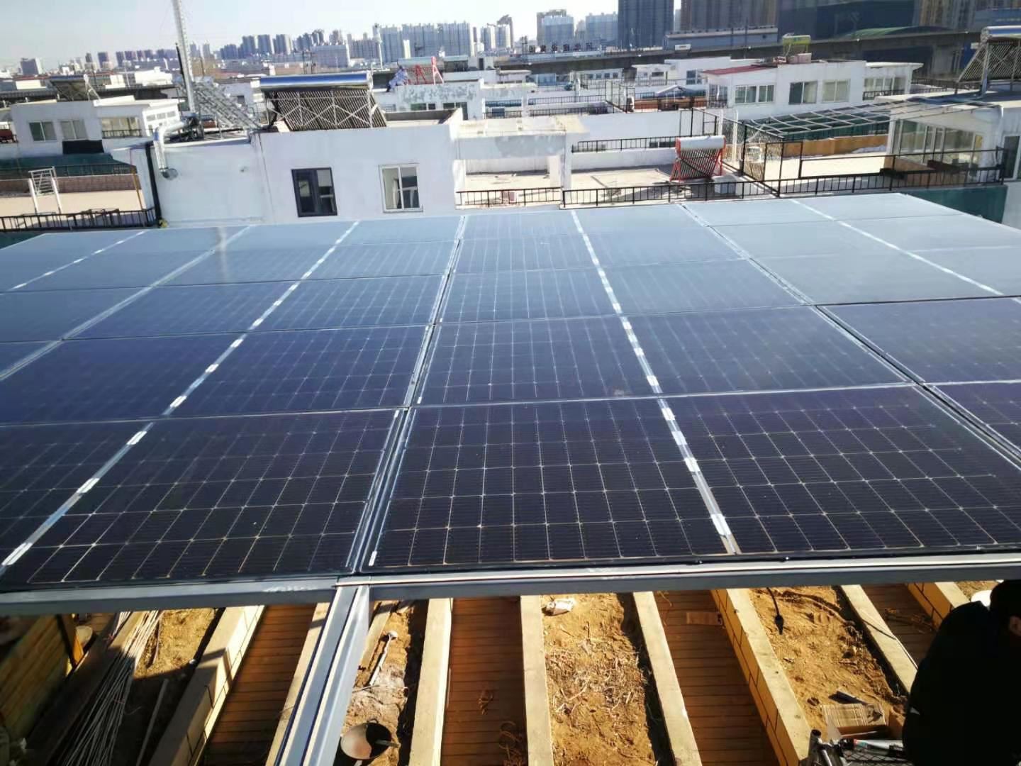 Peralatan dasar dari sistem pembangkit listrik fotovoltaik terdistribusi termasuk komponen sel fotovoltaik, braket susunan persegi fotovoltaik, kotak gabungan DC, lemari distribusi daya DC, inverter yang terhubung dengan jaringan, lemari distribusi daya AC dan peralatan lainnya, serta perangkat pemantauan sistem catu daya dan perangkat pemantauan lingkungan. Mode operasinya adalah bahwa dalam kondisi radiasi matahari, array modul sel surya dari sistem pembangkit listrik fotovoltaik mengkonversi energi listrik output dari energi surya, dan mengirimkannya ke kabinet distribusi DC melalui kotak combiner DC, dan terbalik oleh inverter yang terhubung dengan grid menjadi catu daya AC. Beban, surplus, atau daya tidak mencukupi bangunan sendiri disesuaikan dengan menghubungkan ke grid.